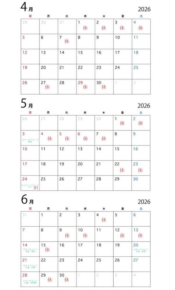 ◇隔週の生徒さんはレッスン日を直接ご確認ください。