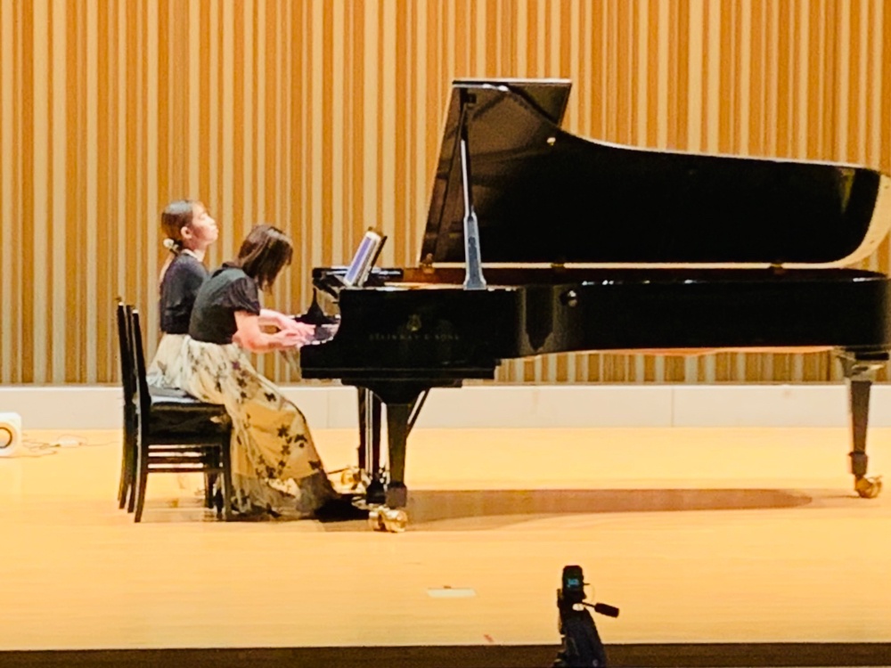 ソロとは違い、連弾は音の厚みが増します✨テンポ感など、息を合わせて弾く事はもちろんのことただ弾くだけではなく、この部分はどちらが旋律なのか、伴奏なのか、ボリュームを考えて弾かないといけません。連弾はとても勉強になります👓…ちなみにお揃いの衣装です👗お読みいただきありがとうございました🐱